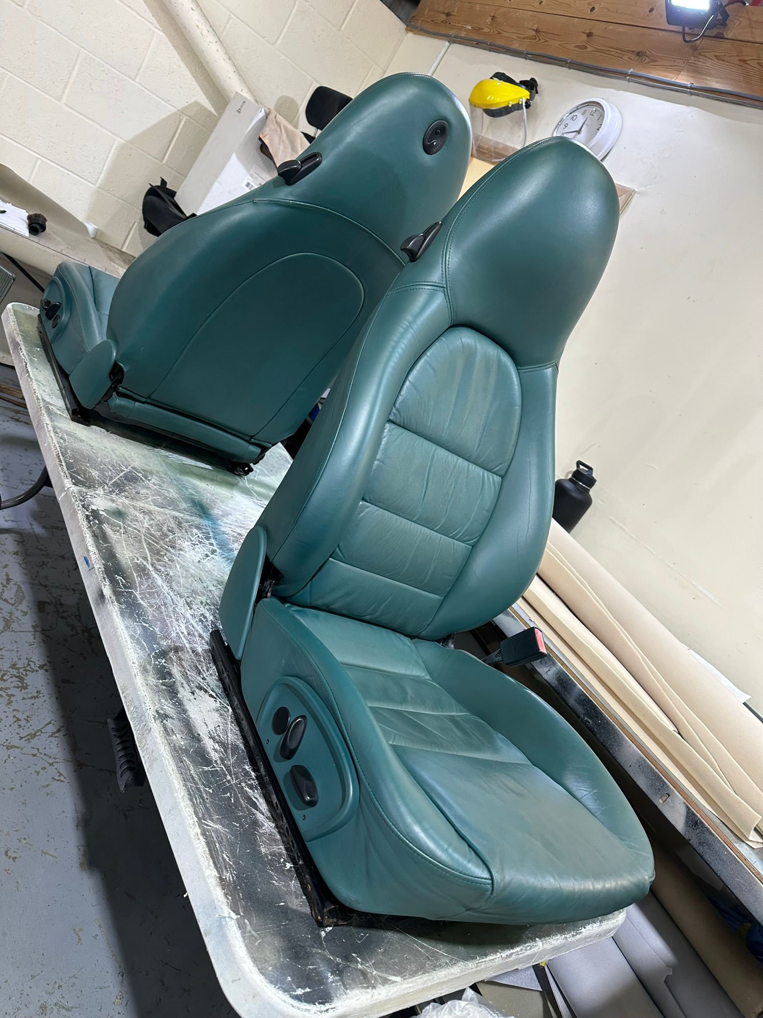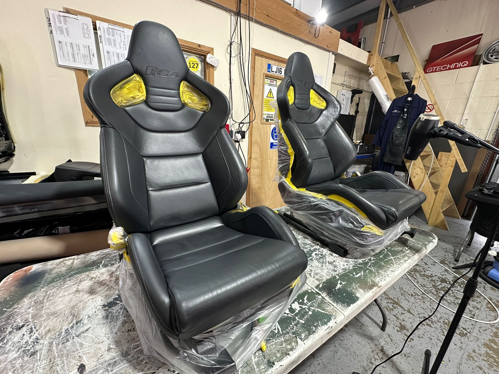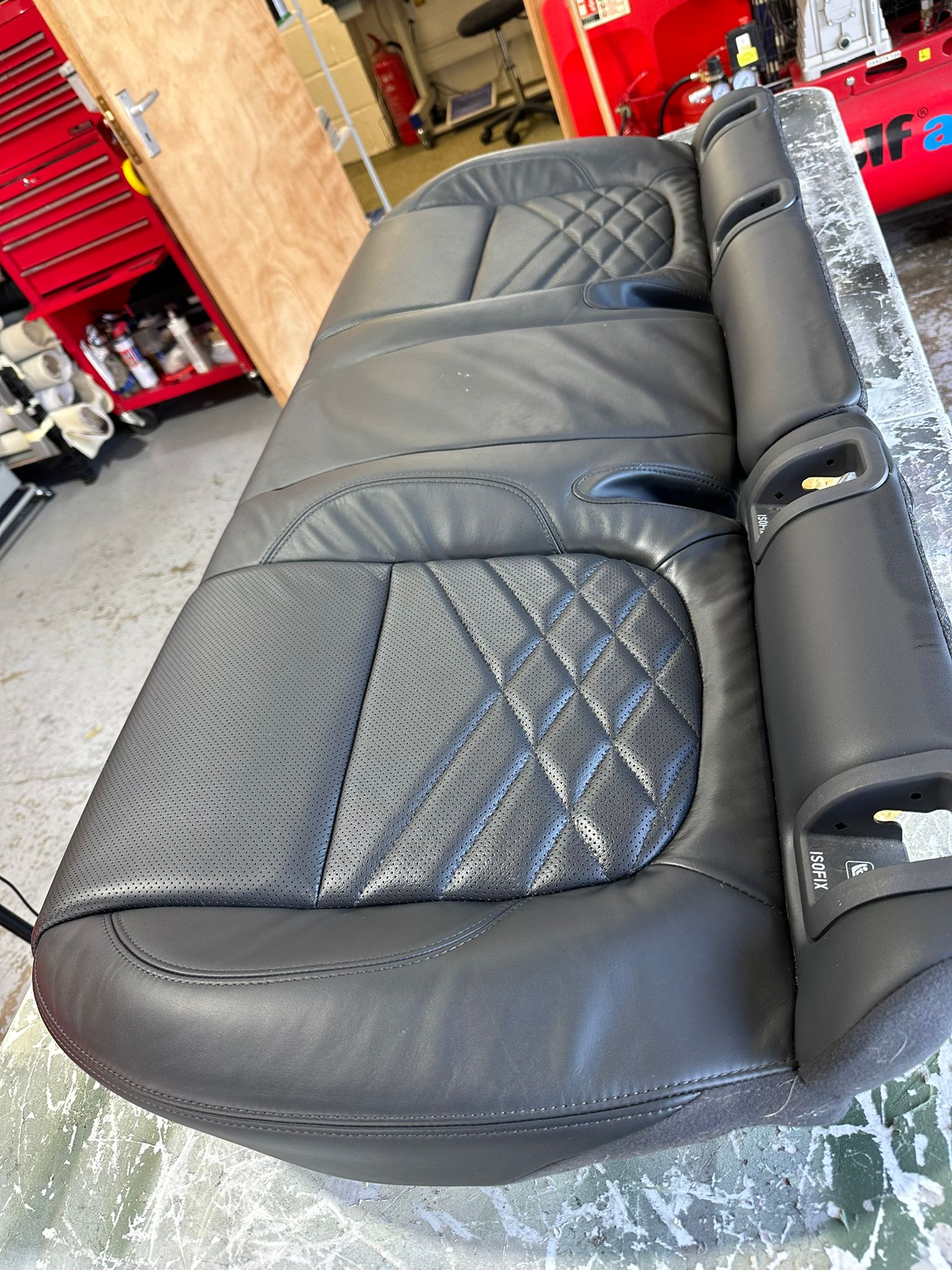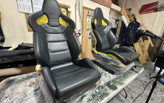 Custom leather car seat covers supplied and fitted to restore worn seating while upgrading comfort, durability and luxury finish.